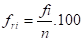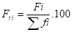 Frequências relativas (f ri ) – são os valores das razões (quociente) entre as frequências simples e a frequência total multiplicada por 100 para que os dados sejam apresentados em porcentagem: