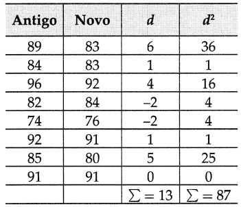 15) Uma empresa quer determinar se a classificação de seus produtos por consumidores (0-10) mudou do ano passado para este ano. A tabela mostra a classificação dos produtos da empresa feita pelos mesmos oito consumidores do ano passado para este ano. Ao nível de 5% de significância, há evidência suficiente para concluir que a classificação do produto mudou?