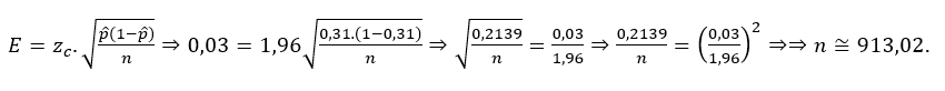 em que o erro (ou erro máximo da estimativa ou tolerância de erro) é dado pela fórmula: