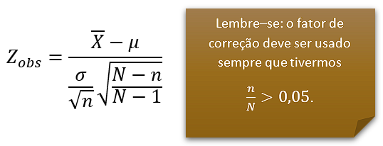 Para populações finitas, deve–se acrescentar o fator de correção populacional ao cálculo de Zobservado: