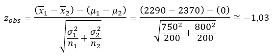 Assim, nossa estatística, ou seja, o valor de z observado é: